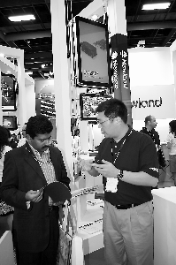 新大陸臺灣子公司人士向參展客商介紹相關產品。朱力南 攝